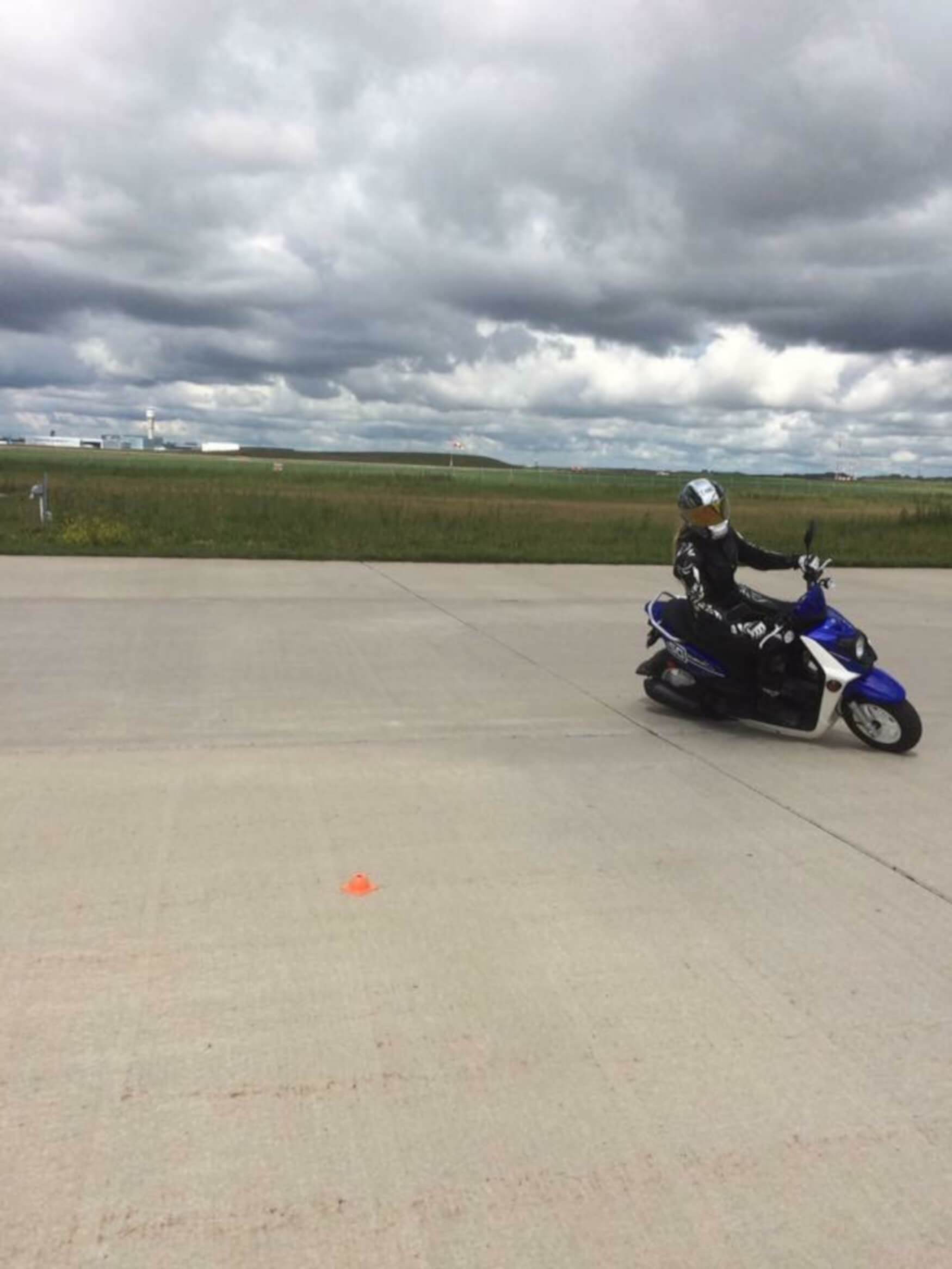 Jennifer Angelina giving a demo on the scooter of countersteering