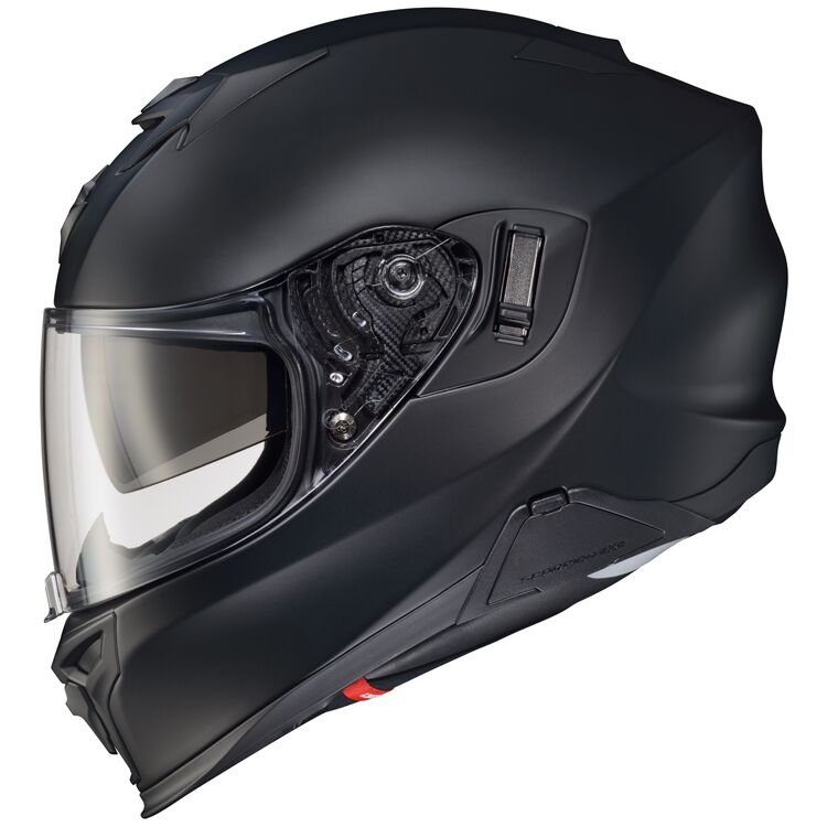 Inside is the luxurious Kwikwick® III liner, plenty of room for speakers thanks to the deep cutouts, and the AirFit® inflation cheek pads. The EXO-ST1400 has a well-formed neck roll and combined with the chin curtain, helped to block out wind noise and keep drafts from creeping up. A lot of features are good, but only if they are well-executed, and in this case, Scorpion has done a good job. The ventilation is good, the internal visor is dark enough, and the helmet is comfortable for hours of riding. All of this adds up to a well-sorted helmet designed for sport and sport-touring riders.