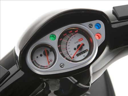 Convenience touches aren’t quite as plentiful. There’s no clock or accessory charging outlet, which are both hard to live without once you’ve gotten used to them. The instrumentation is fairly standard fare, with a speedometer, fuel gauges, odometer and a few warning lights. There’s no trip odometer or other information on power and mileage like you find in the higher end Aprilia SR50.